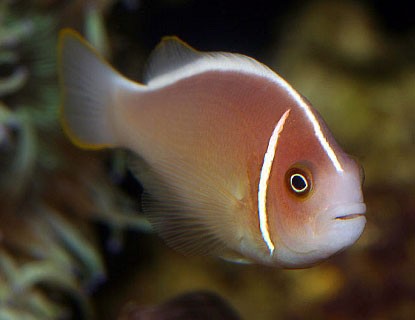 Maximális méret: 9 cm, Akvárium méret: 100 l. Halvány pasztell rózsaszínes alapszínével és egyetlen csíkjával eltér a megszokott bohóchal képtől. Azonban tipikus bohóchalról van szó, azok között is kis termetű békés fajnak számít. Párban vagy magányosan tartsuk.