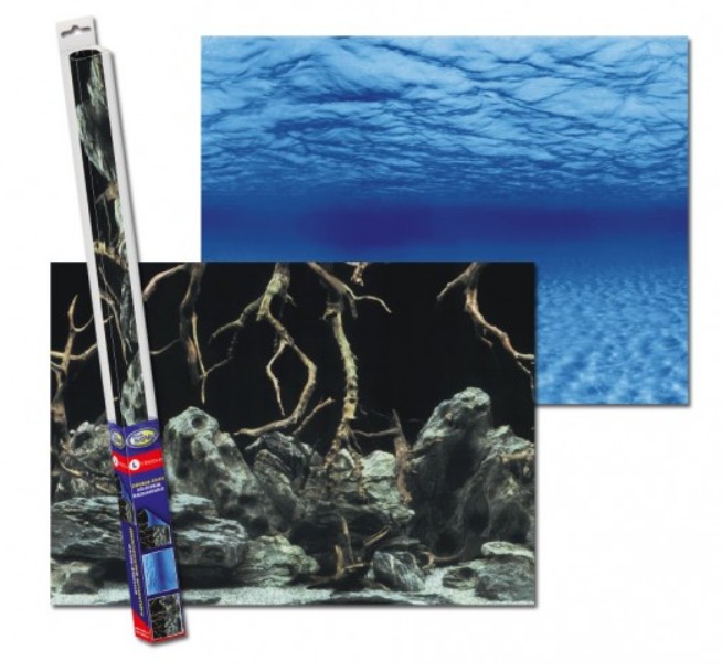 Kétoldalas akváriumi, 2D-s háttér. Mindkét oldalon más minta, így tetszés szerint választható, melyik oldalát használjuk.