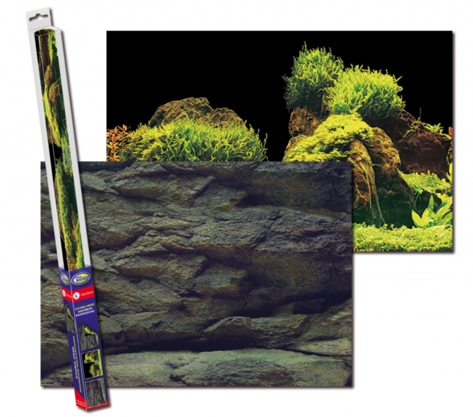 Kétoldalas akváriumi, 2D-s háttér. Mindkét oldalon más minta, így tetszés szerint választható, melyik oldalát használjuk.