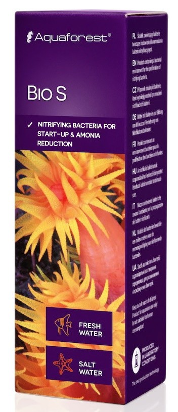 Az Aquaforest cég BIO S készítménye baktérium kultúrákat tartalmaz, melyek kedvező feltételeket teremtenek a nitrobacter törzsek szaporodásához. A speciálisan kiválasztott baktérium törzsek elősegítik az ammónia és más mérgező szerves vegyületek eltávolítását. Egy újonnan berendezett akváriumban ezek a baktérium kultúrák a motorjai a nitrát körforgásnak és ők biztosítják az első akváriumlakók számára a kedvező mikrobiológiai feltételeket.
