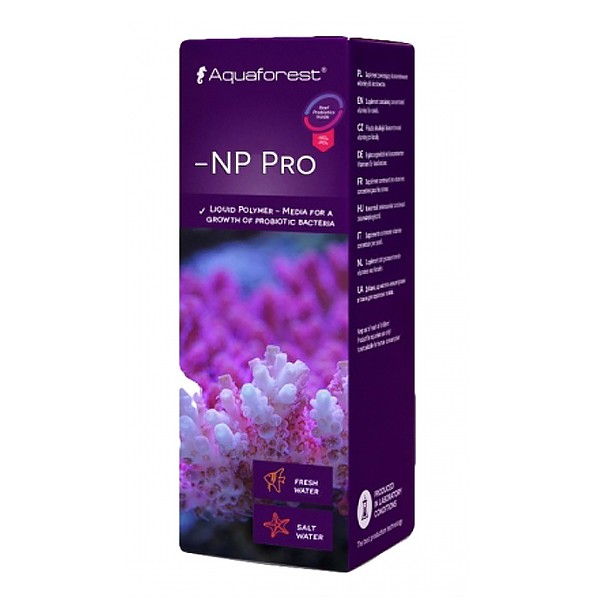 Az Aquaforest –NP Pro készítménye táptalajt tartalmaz, mely a probiotikus baktériumok növekedését segítik elő. Az NP Pro adagolásával a baktériumok gyorsabban szaporodnak, és így a nemkívánatos anyagok mint a nitrát és foszfát biomasszába való átalakulását segítik elő. A folyamat végén a baktériumok egy részét a hableválasztó eltávolítja, másik része pedig a korallok számára természetes táplálékforrást jelent.