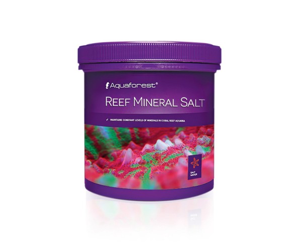 Aquaforest Reef Mineral Salt is a Sodium Chloride (NaCl) free sea salt. It contains all the other basic components found in natural seawater, such as Magnesium, Calcium, Potassium, Bromine, Fluorine, Barium, Iodine, and trace elements.