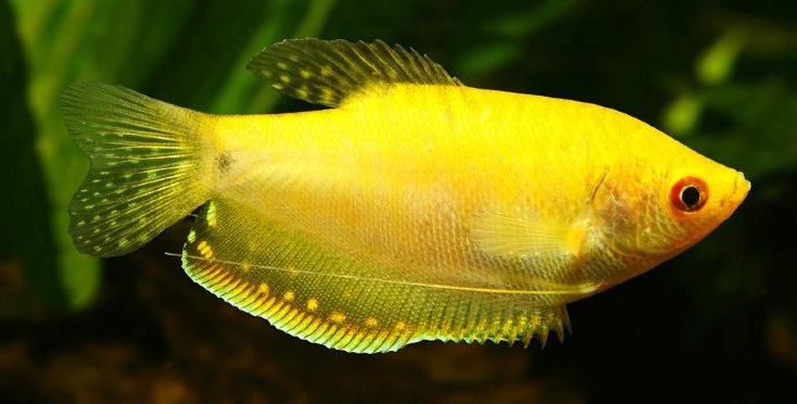 * Tudományos név : Trichogaster trichopterus * Magyar név: Arany gurámi * Csoport: Labirint-kopoltyúsok * Származás: Délkelet-Ázsia. * Testhossz: 13-15 cm * Természetes élőhely: Folyók holtága, tavak, mocsarak, öntözőcsatornák. * Viselkedés: A hímek egymással hajlamosak agresszívan viselkedni. * Táplálkozás: Ragadozók (sóféreglárva, szúnyoglárva). * Szaporodás: Elég könnyű. * Medence: Minimum 120 literes * Halnépesség: 120 literre 1 hím és 2 nőstény; * Dekoráció: Sűrű növényzet. * Hőmérséklet: 24-28°C * pH: 7,6-7,5. * Keménység: 5,6-8,4 NK° Megjegyzés: Mivel a hímek nagyon élénkek és erősek, a nőstényeknek szükségük van olyan növényekre, melyek között elrejtőzhetnek a hímek elől. Szaporodás idején a hím habfészket készít. Egy 10 cm nagyságú hím már jól megkülönböztethető a nősténytől, melynek a hátúszója lekerekített, a hímé viszont finom és hosszúra nyúlt. Amikor a nőstény párzásra készen áll, a szájával böködni kezdi a hímet a farok alatti úszója alatt. Ez után következik a párzás, mely olykor 4 óra hosszat is eltart. A hím U alakúra görbülve, egész idő alatt átölelve tartja a nőstényt. A nagy mennyiségben kieresztett ikrák (1000 körül) a vízfelszín felé emelkednek, de csak a hím foglalkozik velük. Az első három napon infuzóriákkal, a továbbiakban sóféreglárvákkal kell etetni őket. Az adatok a diszhal.info honlapról származnak.