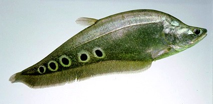 * Tudományos név : Notopterus chitala * Magyar név: Bohóc késhal * Csoport: Egyéb halak * Származás: Délkelet-Ázsia * Testhossz: 100 cm * Természetes élőhely: Nagy lassú folyású folyókban és növényekkel sűrűn benőtt holtágakban. * Viselkedés: Társítani csak nagyra növő halakkal szabad, mert ami befér a száján azt megeszi. * Táplálkozás: Ragadozó hal, nagyméretű élő eleséggel, rovarokkal, gilisztákkal, felcsíkozott hússal és kis halakkal etethetjük. * Szaporítás: Mérete miatt akváriumban nem tenyésztik, de szaporítása egyébként lehetséges. * Medence: Minimum 500 literes * Halnépesség: 500 literre 1 hal * Dekoráció: Növényekkel dúsan beültetett nagy akvárium, sok búvóhely. Apró kavicsos aljzat. Úszónövények a nagyobb biztoságérzet miatt. * Hőmérséklet: 24-28 °C * pH: 6-7 * Keménység: 1-10NK° Megjegyzés: Testük hosszúkás, oldalról lapított, tipikus késhal forma, a hátúszó teljesen hiányzik. Alapszíne ezültös, barna árnyalatokkal. A legfeltűnőbb jellegzetessége a kör alakú foltok a hal hátsó, középső részén, amiknek a mérete és száma növekszik, ahogyan a hal nő. Élőhelyén, amikor még kicsik, csapatokban élnek, általában vizinövényekkel sűrűn benőtt vizekben. A folyók nyugodtab részeit részesítik előnyben. Éjszakai életmódot élnek, csak napnyugta után jönnek elő. A felnőtt egyedek védik territóriumukat és nem szeretnek elmozdulni megszokott helyeikről. Általában a fiatal példányokat tartják akváriumokban. Élőhelyén kedvelt étkezési hal. Fogságban is sikerült szaporítani, de nagyon nehéz, mivel felnőtt korukban elérhetik a 100cm-t és nagyon nagy akváriumra van szükség. Általában szilárd tereptárgyakra ikrázik és az ikrákat a hím védi. Az ivadékok 6-7 nap múlva kelnek ki és a hím tovább vigyáz rájuk. Az adatok a diszhal.info honlapról származnak.