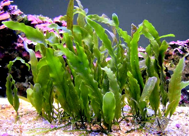 Nagyon gyorsan fejlődő zöldalga. A talajon terjedő szárán hozza arasznyira megnövő, 1-2 cm széles levélszerű hajtásait. A talajhoz gyökérszerű szárrészek rögzítik, amik a valódi gyökerektől eltérően a tápanyagok felvételében nem kiemelt szerepűek. Nagyon könnyen tartható, szinte bármilyen körülmények között megél. Sok fényben, megfeleő tápanyagellátás mellett a szár vége naponta 2 cm-t is fejlődhet. Korallok között problémát okoz, ne engedjük ránőni semmi más élőlényre. Vegyi anyagokkal is igyekszik elnyomni minden más élőlényt. Gyakran ritkítsuk, mert különben a telep összeomlik: kifehéredik, és tejszerűvé teszi a vizet.