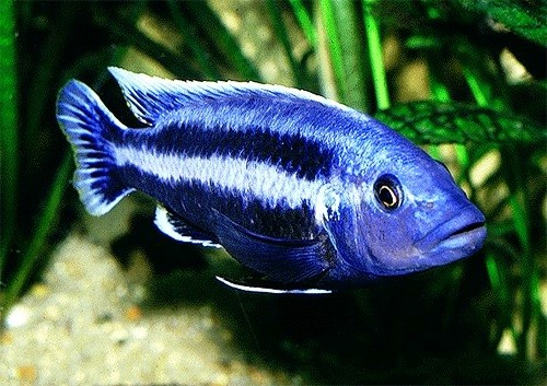 A hím teste kék lesz, oldalán fehér csíkkal. Bővebb információ a Lukács László és Sinkó Gábor által szerzett "A Tanganyika-és a Malawi-tó sügérvilága" c. könyv III. bővített kiadásában található, a 134. oldalon.