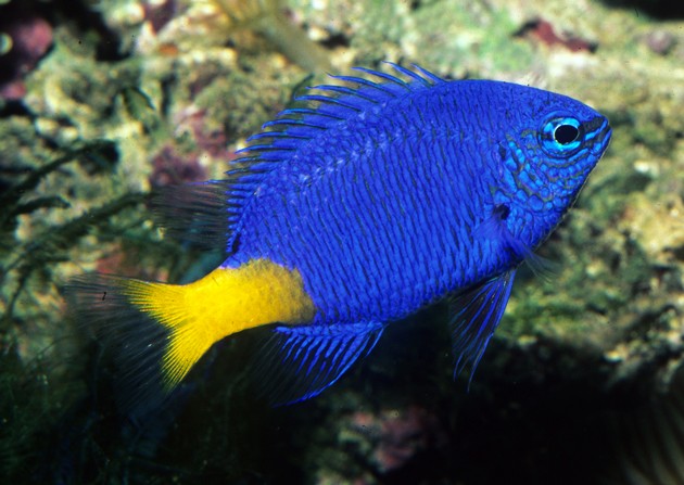 Maximális méret: 7 cm, Akvárium méret: 100 l. Kék-sárga színösszeállítású apró halacska. Kissé agresszív, főleg az idős hímek, ezért magában vagy párban érdemes tartani. Nagy akváriumban több példány megfér egymás mellett ha van számukra elegendő búvóhely. Szívós, ellenálló hal, eleségben sem válogatós. Planktonevő, bármilyen állati eredetű élelmet megeszik.