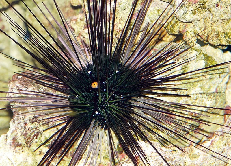 Hosszú, akár 20 cm-es tüskéivel jellegzetes külsejű tengeri sün. Ijesztő külseje ellenére az egyik legbékésebb faj. Nem hurcol el kis korallokat, a szirtet sem szokta feldönteni, és a mészalgával is kíméletesebb. Termete miatt elegendő rérről kell számára gondoskodni. Az akváriumban fejlődő algával táplálkozik, etetésére felhasználható a növényevő halaknál használatos minden eleség. A természetben kardinálishalak élnek a tüskéi között.