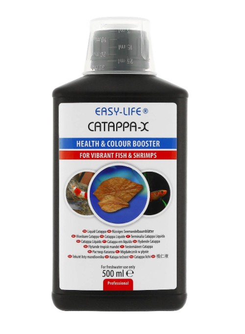 A holland Easy Life cég Easy Life Catappa-X esszenciája magában hordozza a catappa levelek és kérgek jó tulajdonságait, a rossz tulajdonságaik nélkül. A catappa levéllel ellentétben az Easy Life Catappa-X nem színezi a vizet. A hagyományosan használt catappa levelek bomlása rontja a vízminőséget. A Catappa-X nem rontja a vízminőségét.