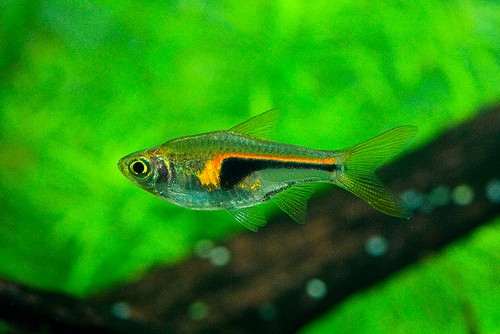 A Rasbora hengeli egy új színfoltja az akvarisztikának. Lenyűgöző szépsége leginkább akkor nyilvánul meg, ha nagy csapatban tartjuk, növényekkel dúsan berendezett akváriumban.