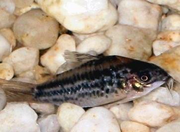 LEÍRÁS: A test felső része sötét; a két sor csontos lemez csatlakozása alatt töredezett, foltokból álló sáv húzódik. A fejtető sötétebb, a hasoldal szürkésrózsaszín. A hímek színe erősebb lehet, mint a nőstényeké és hátúszójuk csúcsosabb. A színtelen úszók véletlenszerűen foltosak lehetnek. ELTERJEDÉSI TERÜLET: Középső-Amazónia folyói. TARTÁS ÉS TENYÉSZTÉS: A márvány páncélosharcsa méretében és mintázatában nagyon hasonlít a C. nanus-hoz. Az akvárium aljzata puha legyen, hogy a bajuszszálak ne sérüljenek meg. A homok jobb kavicsnál. EGYÉB NEVEK: Syn: Corydoras pestai. Eng: Elegant corydoras . Egyéb köznevei: Caracha, Shirui.