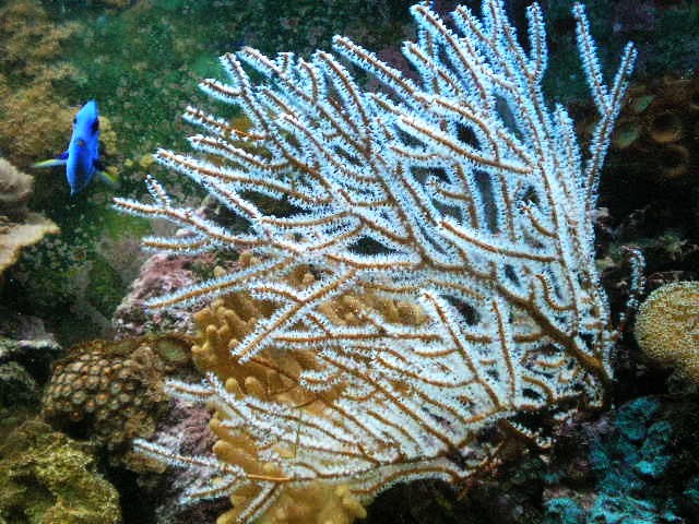 Legyezőszerű, egy síkban fejlődő, hálószerűen összekapcsolótó hajtásokat viselő fajok tartoznak ide. Polipjaik barnásak vagy sárgásak. Fotoszintetizálnak, nagyon erős fényre és egyirányú, a legyezőjükre merőleges áramlásra van szükségük. Apró planktont is fogyasztanak, ami nagyon fontos a tartós életben maradásukhoz. Tartásuk csak gyakorlott akvaristáknak ajánlható. A kereskedésekben Gorgonia néven kapható korallok általában rokon nemzetségekbe tartozó nem fotoszintetizáló fajok. Nagyon színesek, de az életben maradásukhoz szükséges nagy mennyiségű apró planktont a legtöbb akvarista nem tudja biztosítani. Ezeknek is erős, egyirányú vagy oda-vissza hullámzó áramlást kell biztosítani.
