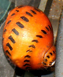 * Tudományos név : Neritina sp. * Magyar név: Hagymacsiga * Csoport: Gerinctelenek * Származás: Dél-Afrika * Testhossz: 4-5 cm * Természetes élőhely: Erdei és hegyi patakokban, ahol a kövekre rakódott algákat legelik. * Viselkedés: Békés, a halakat nem bántja. Csigaevő halakkal ne tartsuk. * Táplálkozás: Akváriumban algákat eszik, de adhatunk neki haleledelt, vagy más növényi eredetű táplálékot. * Szaporítás: Akváriumban nem szaporodik * Medence: Minimum 30 literes * Halnépesség: 30 literre 3-4 csiga * Dekoráció: Akváriumukat fedjük jól, mert kimászhatnak. A növényeket nem bántják. * Hőmérséklet: 22-26 °C * pH: 6-8,5 * Keménység: 7-20NK° Megjegyzés: A Hagymacsiga az egyik legszebb az édesvízi akváriumi csigák közül. Tartsuk kicsit lúgos vagy semleges, keményebb vízben, mert a savasabb vízben tönkremehet a háza. Mivel elsősorban algákat eszik, ezért olyan akváriumban érdemes tartani, ahol erős az algaképződés. Sajnos akváriumban nem volt még sikeres a szaporítása, egyben ez az előnye is, mert biztosan nem fog túlszaporodni medencéinkben. Néha édesvízben is rak le petéket, de ezek sohasem kelnek ki. Egyes beszámolók szerint brakk vízben szaporodik, de a kikelt peték nem éltek tovább néhány napnál. Az eredeti élőhelyén sok mészkő található, talán ez is szükséges a lárvák túléléséhez. Az adatok a diszhal.info honlapról származnak.