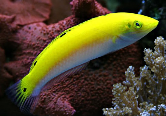 Halichoeres leucoxanthus (Feketefoltos sárga ajakoshal)