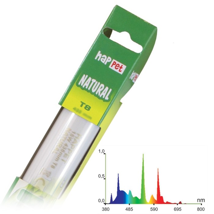 A Natural T8 akvárium fénycső. A természetes napfény spektrumához közel álló fénytulajdonságokkal rendelkezik. Természetes, egészséges élővilágot biztosít, serkenti az akváriumi növények fotoszintézisét. Fényhőmérséklete 7500K. Lilás árnyalatú fénycsővel használva tökéletes fényviszonyokat és intenzív színkiemelést érhetünk el.