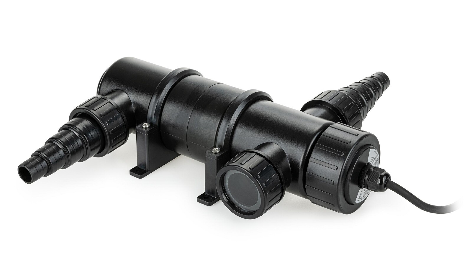 Műanyag házban levő UV-C fényt adó izzóval megvilágítjuk a rajta keresztül átáramoltatott vizet (ehhez szükséges egy kisebb teljeseítményű szivattyú és gumicső) AZ UV-C sugarak átjárják a vizet, és elpusztítják az algát, baktériumokat és különböző kórokozókat egyaránt, megszűntetve ezáltal a víz zavarosodást, és kristálytiszta vizünk lesz tóban és akváriumban egyaránt. A sugárzás a szűrők tisztítóbaktériumaira nincs hatással. 4,5 méter kábellel