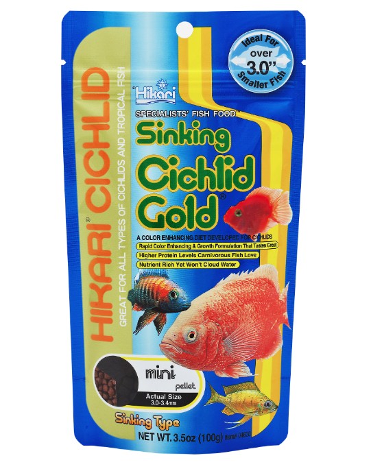 A Hikari Cichlid Gold Sinking Medium mindennapi etetéshez, sügéreknek és nagyobb trópusi halak ideális táplálkozási egyensúlyának szem előtt tartásával fejlesztették ki.