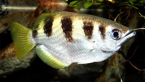 * Tudományos név : Toxotes jaculatrix * Magyar név: Lövőhal * Csoport: Brakkvizi halak * Származás: Délkelet-Ázsia és Ausztárlia északi része. * Testhossz: 24 cm * Természetes élőhely: Part menti vizek. * Viselkedés: Nyugodt, rajban él. A vízfelszín közelében úszik. * Táplálkozás: Ragadozó, kedveli a legyeket és más apró rovarokat. * Szaporítás: Akváriumban ritkán sikerül. * Medence: Minimum 500 literes * Halnépesség: 500 literre 5-6 hal * Dekoráció: Növény és gyökerek. * Hőmérséklet: 25-30°C * pH: 8-8,3 * Keménység: 10-20NK° * Sótartalom: 5-20% Megjegyzés: A természetben a lővőhal kőzvetlenül a vízfelszín alatt él és rovarokra vadászik, s néha egy pillanatra még a vízen úszó ágakra is felugrik, de nem hagyja el a vízi kőrnyezetet. Amikor meglátja a kiszemelt áldozatot, erős sugárban vizet köp rá (másfél méter távolságra is képes vizet köpni), a rovar ekkor a vízre hullik s a lövőhal azonnal felfalja. Az is előfordul, hogy kiugrik a vízből és úgy kapja el a zsákmányt. A legideálisabb akvaterráriumban tartani, melyben sok a víz, és a növények a víz fölé emelkednek. A szűrés legyen óránként a medence térfogatának 2-3-szorosa, de ne mozgassa meg a víz felszínét. A lövőhal elviseli a víz sótartalmának jelentős változásait: éppoly jól alkalmazkodik az édesvízhez, mint a tengervízhez. Mivel békés természetű, együtt lehet tartani más brakkvízi halakkal. Az adatok a diszhal.info honlapról származnak.
