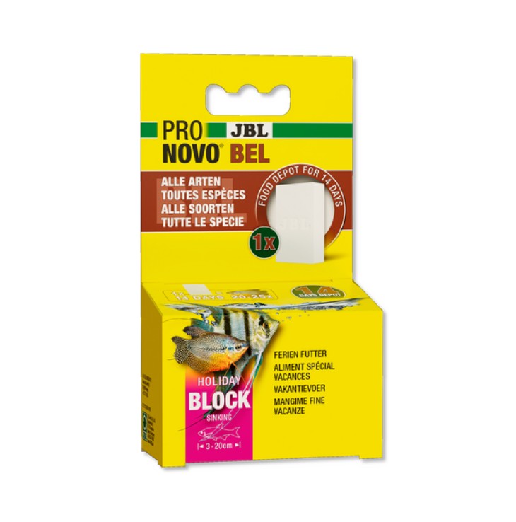 A vakáció táp az összes olyan létfontosságú tápanyagot tartalmazza (gabonák, élesztő, alga, állati eredetű származékok), melyre szüksége van a halaknak ahhoz, hogy egészségesek és életerősek legyenek. Főeleség. Az EC által engedélyezett színezékek hozzáadásával készült. Ajánlott adagolás: A vakáció táp azonnal fogyasztható eledel, 20-25 közepes méretű hal részére 2 héten keresztül. Helyezzen egy vagy több kockát az akvárium vizébe, a halak számától függően. A kocka folyamatosan oldódik, a halak tápanyagfelvételével összhangban, anélkül, hogy a vizet zavarossá tenné.