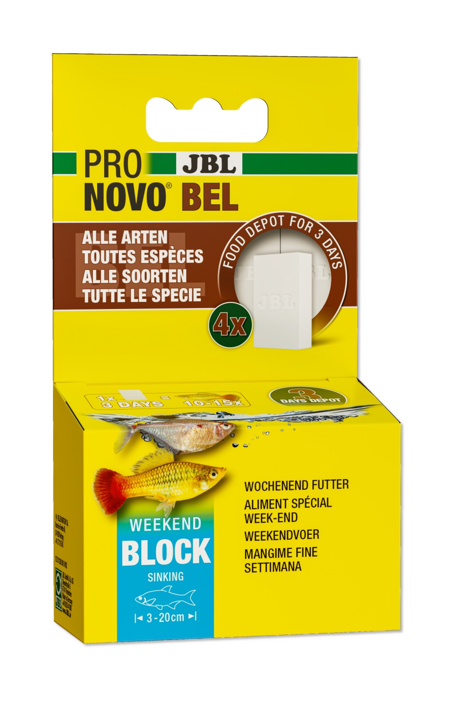 A csomag tartalma: 4 etetőkocka. 1 kocka kb. 15 hal etetéséhez elegendő 3 napon keresztül