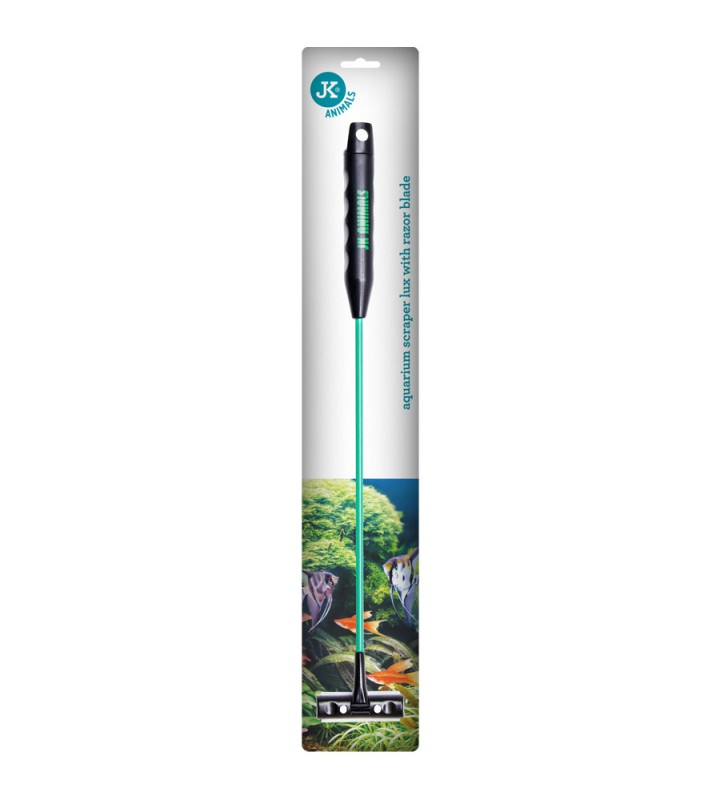 Egyszerű és hatékony eszköz az algák eltávolításához. Üvegszálas nyéllel, cserélhető, rozsdamentes pengével. Az oldalsó védőburkolat megakadályozza az akvárium szigetelésének megsértését. A flexibilis fejrész könyebbé teszi a munkát.