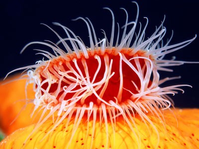 Élénk vöröses vagy narancsos csápokat viselő fésűkagyló faj. Csápjaival a vizet szűri, apró planktonnal és szerves törmelékkel táplálkozik. Tartása nehéz, mert a többi vizet szűrő élőlényhez hasonlóan ennek is szinte folyamatos táplálék-ellátárra van szüksége. Akváriumban nem szokott tartósan megmaradni.