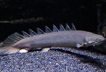 * Tudományos név : Polypterus senegalus * Magyar név: Nílusi sokúszós csuka * Csoport: Egyéb halak * Származás: Afrika * Testhossz: 30 cm * Természetes élőhely: Mocsaras vizek Közép- és Nyugat-Afrikában. * Viselkedés: Territóriális halak, de ha mindegyiknek megvan a saját búvóhelye, akkor nem nagyon kötekednek. Más nagy testű halakkal tartható. * Táplálkozás: Ragadozó hal, szúnyoglárvával, rovarokkal, hallal etethetjük. * Szaporítás: Akváriumi körülmények között nem tenyésztik * Medence: Minimum 100 literes * Halnépesség: 100 literre 2 hal * Dekoráció: Növényekkel dúsan beültetett akvárium, sok búvóhely. Az akvárium ne legyen túl világos. Mindenképpen fedett akvárium! * Hőmérséklet: 24-28 °C * pH: 7 * Keménység: 10-20NK° Megjegyzés: Teste hosszú, karcsú, az alapszíne ezüst-szürkétől a sárgás-barnáig vátozhat. A hasi részen fehéres, az úszói fakó sárgák. Hátúszója több kisebb úszóból áll össze, olyan mint a fűrész fogai. Nevét is ezekről az úszókról kapta. A többi haltól eltérően, a nílusi sokúszós csukának nincs úszóhólyagja, hanem egy tüdőhöz hasonlatos szervet fejlesztett ki, amivel a légköri levegőből tud oxigént felvenni. Ennek segítségével még az oxigénben szegény vizekben is meg tud élni. Másik érdekessége ennek a fajnak, hogy a fejlődésük során lárva alakot vesznek fel, amikor is a fiatal halaknak külső kopoltyújuk fejlődik, mint pl. a szalamandráknak. Ezek a kopoltyúk fokozatosan visszahúzódnak, ahogy a hal nő. Fenéklakó halak, és általában éjjel vadásznak. A természetben rovarokat esznek, de akváriumban adhatunk nekik haldarabokat és földigilisztát, vagy tubifexet is. Ha több ilyan halat is tartunk, gondoskodnunk kell róla, hogy mindegyiknek legyen külön búvóhelye. Nappal nem nagyon mutatkoznak, de etetéskor megfigyelhetjük látványos mozgásukat. Nagyon jó a szaglásuk, és rögtön megérzik, ha etetünk. Nagyon jó szabadulóművészek és rövid ideig a szárazon is elvannak, ezért mindenképpen le kell fedni az akváriumukat! Habár sok hal eléri a felnőtt kort akváriumban is, mégis keveset tudunk a szaporodásukról. A hímeknek a farok alatti úszójuk szélesebb. A nőstények pár száz ikrát raknak, amiből az ivadékok kb. 4 nap alatt kelnek ki. A vízcsere sokkal hidegebb vízzel beindíthatja az ívást. Az ívás után vegyük ki az ikrákat, és külön akváriumban neveljük a kishalakat, amelyeknek ilyenkor még külső kopoltyújuk van. Az adatok a diszhal.info honlapról származnak.