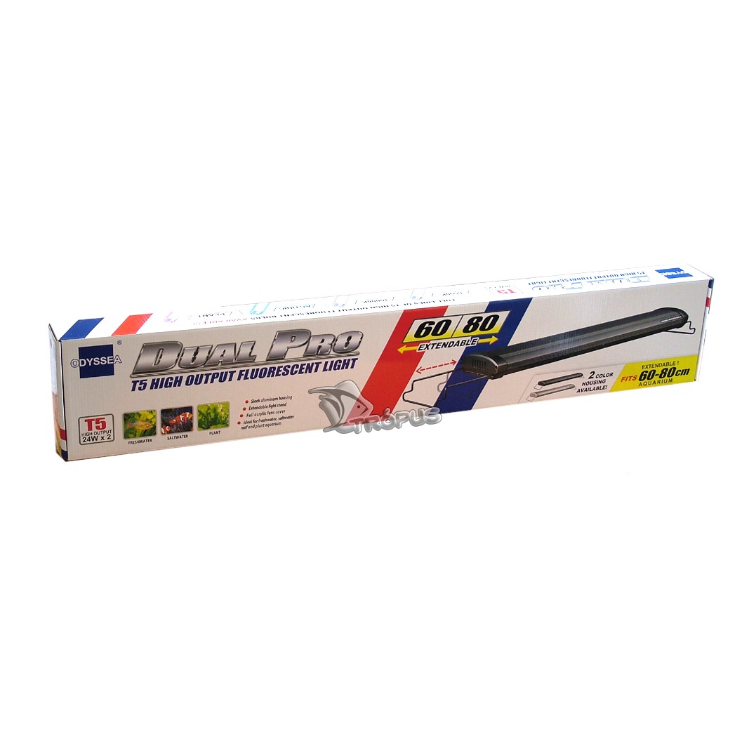 A Dual T5 lámpát az akvárium szélére rá lehet akasztani, a két végén elhelyezkedő állítható lábakkal, így alkalmas 60-90 cm-ig terjedő méretű akváriumokhoz. Az elektronika külön dobozban található, de az ár tartalmazza azt. A lámpa méretei: 60x13x4,5cm A lámpa ára tartalmazza a benne lévő 2 db fénycsövet. /1db plant (növényes) és 1db 6500 kelvines fehér/
