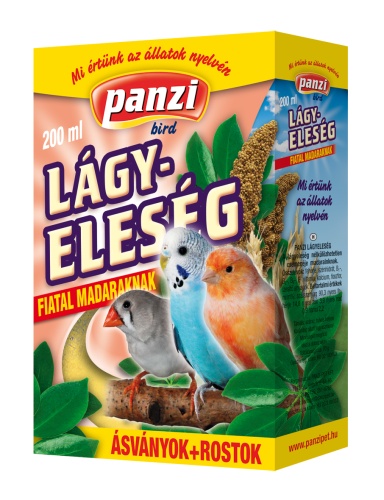 Panzi Lágyeleség pintyeknek és papagájoknak – Magas ásványianyag és rosttartalmú lágyeleség pintyeknek, kanáriknak, énekesmadarak és papagájok számára. Ajánlott a költési időszakban felnőtt madarak táplálására, valamint a fiókák kikelésének idejében.