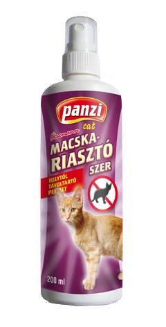 A befújt helytől a macskát elriasztó, távoltartó spray A Panzi Macskariasztó szerrel néhány pumpálással fújjuk le azokat a helyeket, tárgyakat, dísznövényeket (pl. tuja, fenyő), amelyektől a macskát távol akarjuk tartani. A permet a környezetre, emberre, állatra veszélytelen, szabad és zárt térben egyaránt alkalmazható. A hatás fokozása érdekében amennyiben lehetséges, ajánlott a kezelés előtt a kezelendő felületek ammóniamentes mosószerrel történő lemosása. A permet világos vagy érzékeny felületeken halvány nyomot hagyhat!
