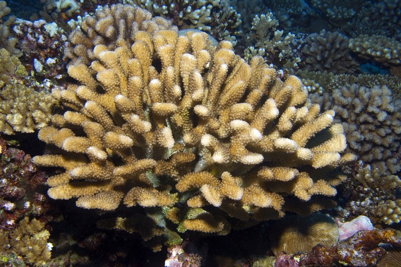 Sűrű, félgömb alakú telepet képző kőkorall. Ágainak felülete fajtól és tartási körülményektől függő mértékben bibircsókos. Látványos színekben is előfordul, de többnyire barnás, egy kevés zöldes vagy bíbor árnyalattal. Erős fényt és erős vízmozgást igényel jó vízminőség mellett. Megfelelő helyen gyorsan fejlődik, és lárvákkal is szaporodik. Ilyenkor csak annyit veszünk észre, hogy új telep jelenik meg valahol az akváriumban ami jó helyen egy év alatt látványos méretűre fejlődhet. Etetést nem igényel.