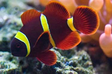 Maximális méret: 16 cm, Akvárium méret: 150 l. A Premnas biaculeatus faj sárgás csíkozású formája. Nagy testű és legagresszív bohóchal. A teste sötét narancsvörös, sárgás csíkozással. Felnőt korukban a hímek őrzik meg jobban ezt a színt. A nemek között nagy a méretbeli különbség, a hím csak fele-harmada hosszúságú a nőstényhez képest. Egymás között is agresszívek, ezért magányosan vagy párban tartsuk. Csak összeállt párt vegyünk meg. Más bohóchal fajokkal nem tartható együtt, a többi halfajt viszont ritkán bántja. Könnyen tartható, jó étvágyú hal. Szinte bármilyen eleséget azonnal elfogad.