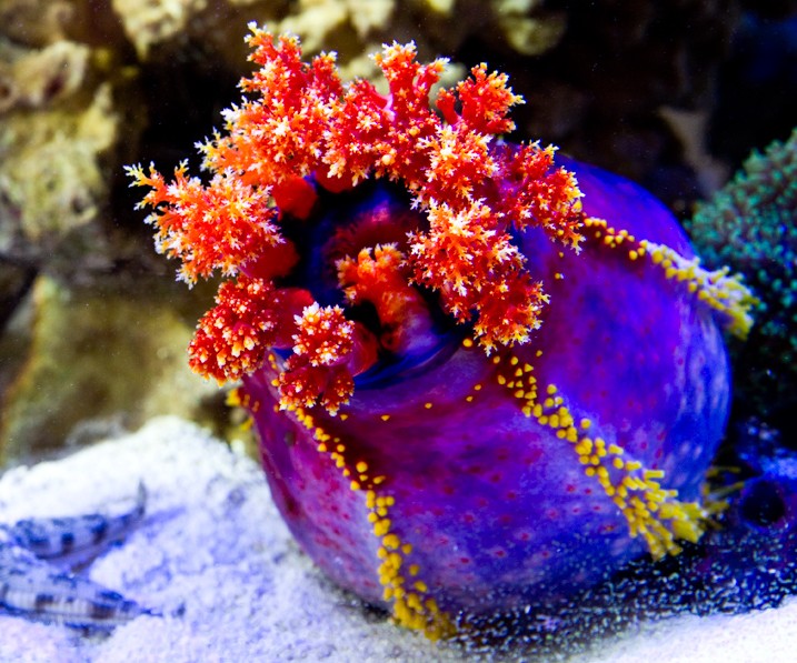 Nagyon látványos, a tengeri uborkák közé tartozó tüskésbőrű. Sajnos a tartása egyáltalán nem könnyű. A vízből szűri ki apró planktonból álló táplálékát. Mesterséges táplálása nehéz. Frissen kelt sórák lárvával vagy ennél apróbb szemcséjű eleséggel kell etetni, lehetőleg naponta többször. Jó, ha az akvárium régi, jól beállt, gazdag élet alakult ki benne. Ilyenkor a tengeri alma talál magának elegendő természetes táplálékot. Kellő törődés hiányában a legtöbb példány lassú éhhalálra van ítélve. Ezt tetézi erősen mérgező volta: pusztulás vagy stressz esetén képes lemérgezni az egész akváriumot. Tartása csak felkészült akvaristáknak ajánlható.