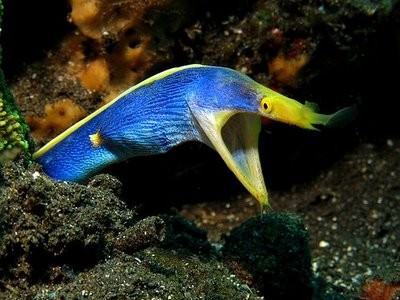 Maximális méret: 120 cm, Akvárium méret: 300 l. Gyönyörű, de az egyik legnehezebben tartható muréna. Kis termetű halakkal és rákokkal nem tartható együtt, más élőlényt nem bánt. Eleinte csak élő eleséget fogad el, néha még azt sem. Nagyon nehéz fagyasztott táplálék elfogadásához szoktatni. Életkor szerint váltja a színét: a fiatalok feketék, később hím lesz és kék, felnőtt korban nőstényként él zöldes-sárgás színben.