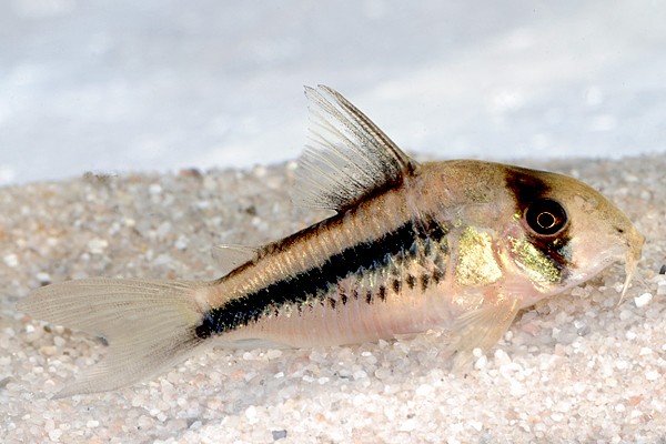 Tudományos név: Corydoras axelrodi (Rössel; 1962) Magyar név: Rózsaszínű páncélosharcsa Csoport: Harcsák Származás: Dél-Amerika, Kolumbia Testhossz: 5 cm Természetes élőhely: A Rio Meta és az Orinoco vizeiben Viselkedés: Békés hal. Társas, rajokban él. A vízfenék közelében úszik. Táplálkozás: Mindenevő, etethető tubifexszel, fagyasztott eleségekkel, harcsatápokkal, tablettákkal. Ajánlott Tropical tápok: Supervit, Cichlid Red&Green Sticks, Discus Gran, Cichlid Gran Szaporítás: Elég könnyű Medence: Minimum 60 literes Halnépesség: 70 literre 4-5 hal Dekoráció: Éles kövektől mentes, sötét színű talaj, növények, gyökerek Hőmérséklet: 20-23°C pH: 6-7 Keménység: 1-15NK° Várható életkor: 5-10 év Megjegyzés: Csapathal, több egyedet tartsunk. Nagyon szép páncélosharcsa fajta, az alapszíne halvány rózsaszín, fekete csík fut végig a hátán és az oldalán. Ugyancsak fekete csík fut a feje tetejétől a szemén keresztül. Úszói átlátszóak, kivéve a hátúszót. A nőstényeknek nagyobb, kerekebb a hasuk, fentől nézve szélesebbek mint a hímek. Ikrázásukat elősegíthetjük, ha az akvárium vizének felét 5 fokkal hidegebb vízre cseréljük. Az ikrákat a nőstény a növényekre, vagy az akvárium üvegére ragasztja, miután a hím megtermékenyítette azokat. Körülbelül 150 ikrát raknak, amelyek 4 nap múlva kelnek ki. A kishalak sórákkal könnyen felnevelhetők. Az adatok a diszhal.info honlapról származnak.