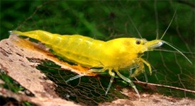 * Tudományos név : Caridina sp. * Magyar név: - * Csoport: Gerinctelenek * Származás: Japán * Testhossz: 2-3 cm * Természetes élőhely: A vad színváltozat Kínában, Taiwanon és Vietnámban honos, de mesterségesen Japánban kezdték tenyészteni. * Viselkedés: Békés, külön a számukra berendezett akváriumban tartsuk őket. * Táplálkozás: Nem válogatós, alga tablettáktól kezdve a különféle haleledelekig mindent megeszik. Adhatunk nekik forrázott spenótot, zöldségeket. * Szaporítás: Könnyű * Medence: Minimum 15 literes * Halnépesség: 15 literre 8-10 garnéla * Dekoráció: Növényekkel dúsan teleültetett akvárium, használjunk a víz színén úszó növényeket, hogy tompítsuk a világítás erősségét. Használjunk sötét színű aljzatot, ami kiemeli a garnélák színét. * Hőmérséklet: 22-28 °C * pH: 6-8 * Keménység: Nem kritikus Megjegyzés: A Neocaridina heteropoda sárga változatát szelektálás útján tenyésztették ki Japánban, a vad színváltozatból, kb. 2006-ban. Mostanra már elterjedt az akvarisztikában, köszönhetően a rendkívüli szaporaságának. Ugyanúgy, mint közeli rokona a Red cherry garnéla, nagyon jól alkalmazkodik szinte minden vízparaméterhez. Etetéskor mindig csak annyit adjunk nekik, amit 2-3 óra alatt megesznek, hogy ne rontsuk le a vízminőséget. A nőstények nagyobbak és a színezetük is sötétebb, mint a hímeké, ezenkívül a hasi részük ívelt. Rendkívül szapora, ha jól érzik magukat, a nőstények szinte állandóan petével teltek. Egy kifejlett nőstény kb. 25 petét hordoz a farok alatti részen, amelyek 30-45 nap alatt kelnek ki. Legjobb módszer, hogy megállapítsuk, hogy közel van a peték kikelése, az, amikor megjelennek a kis szemek a petéken. Ilyenkor általában már csak napok kérdése a kelés. A másik módszer, hogy ha megjelenik a fej mögött az ún. nyereg, olyankor, amikor még a farok alatti részen hordozzák a petéket. Az adatok a diszhal.info honlapról származnak.