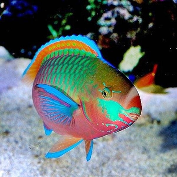 Maximális méret: 40 cm, Akvárium méret: 600 l. A papagájhalak között egyedüliként korallok mellett is tartható. Az egyik legjobb algaevő hal, emellett gyönyörű színezetű. Falánk mindenevő, de lehetőleg minél több növényi eleséget adjunk neki. Eleinte félénk, de gyorsan megszokja a helyét és élénk, örökké mozgó hallá válik. Erős szája miatt vigyázzunk vele, nagyot tud harapni!