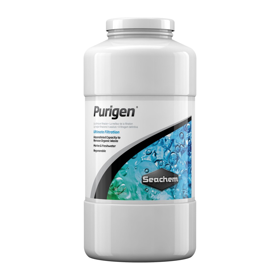 Seachem Purigen® egy prémium szintetikus adszorbens, ami nem hasonlít semmilyen más szűrőanyaghoz. Ez nem egy ion cserélő vagy adszorbens keverék, hanem egy speciális macroporózus szintetikus polimer, ami eltávolítja az oldható és feloldhatatlan szennyeződéseket a vízből. Mindezt minden más szűrőanyagnál hatékonyabban és gyorsabban. Purigen® szabályozza az ammóniát, nitritet, nitrátot úgy, hogy eltávolítja a nitrogénes szerves szennyeződéseket. A Purigen minimálisan hat a trace elemekre, így növénytápokkal is használható. Kiemelkedően emeli a redukciós-oxidációs képességet.