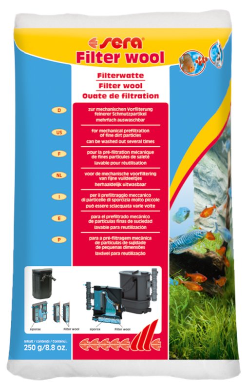 A sera szűrővatta szűrőanyag a mechanikus előszűréshez használható, stabil szálakból áll, melyek a finomabb szennyeződéseket hosszabb időtartamon keresztül fenntartják, anélkül, hogy összeragadnának, vagy összeesnének. A sera szűrővatta többször kimosható. Édes- és tengervíz szűrésére is alkalmas.