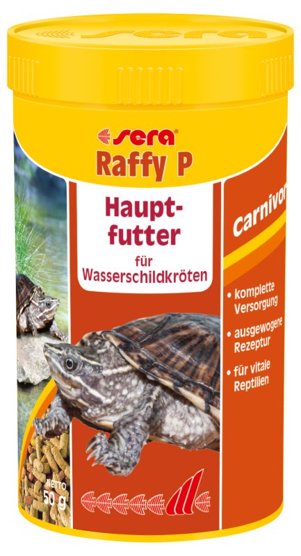 Úszó táplálékdarabok valamennyi vízi teknős mindennapos táplálására. A sera raffy P természetes táplálékállatokból és növényi összetevőkből áll.