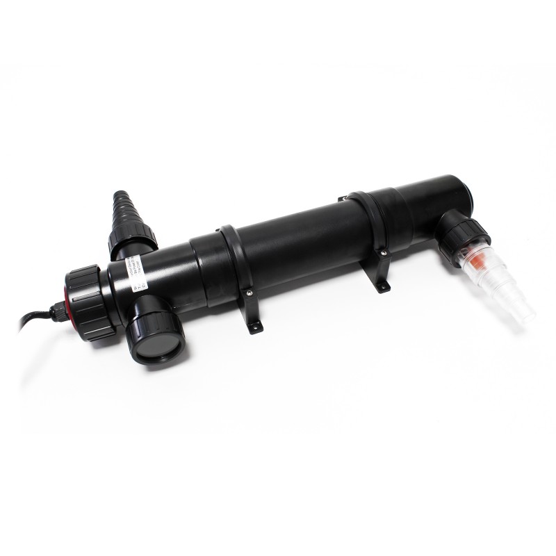 Műanyag házban levő UV-C fényt adó izzóval megvilágítjuk a rajta keresztül átáramoltatott vizet (ehhez szükséges egy kisebb teljeseítményű szivattyú és gumicső) AZ UV-C sugarak átjárják a vizet, és elpusztítják az algát, baktériumokat és különböző kórokozókat egyaránt, megszűntetve ezáltal a víz zavarosodást, és kristálytiszta vizünk lesz tóban és akváriumban egyaránt. A sugárzás a szűrők tisztítóbaktériumaira nincs hatással. 4,5 méter kábellel