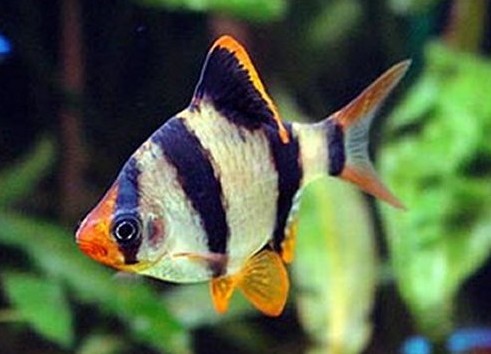 * Tudományos név : Barbus tetrazona * Magyar név: Szumátrai díszmárna * Csoport: Pontyfélék * Származás: Szumátra, Borneó, Malajzia, Thaiföld. * Testhossz: 7 cm * Természetes élőhely: Állóvizek vagy lassú folyóvizek. * Viselkedés: Élénk, kötekedő, rajokban él. * Táplálkozás: Mindenevő * Szaporítás: Elég könnyű * Medence: Minimum 120 literes * Halnépesség: 120 literre 10 hal * Dekoráció: Sűrű növényzet, úszásra szabadon hagyott térrel. * Hőmérséklet: 24-28 °C * pH: 6,5-7,5 * Keménység: 5-8,5NK° Megjegyzés: Egy 10 példányból álló szumátrai díszmárna (Barbus Sumatra) csapat nem zavarja meg az akvárium többi lakójának életét, még akkor sem, ha nem túlságosan nyugodtak. Hogy szabadon úszhassanak és ne találkozzanak akadályokkal, alacsony növényeket, pl. vízikelyheket (Cryptocorynokat) ültessünk az akvárium előterébe, hátulra pedig finom levelű ambuliákat (Limnophyla sp.). Ezek a halak igen falánkak, de sosem szabad túletetni őket. A felnőtt nőstények könnyen felismerhetők nagy kerek hasukról, a hímek viszont sokkal színesebbek a nőstényeknél. A szaporítómedencéjük legyen 50 literes, béleljük ki jávai mohával (Vesicularia dubyana), vagy tegyünk bele műanyag rácsot, nehogy a szülők azonnal felfalhassák a 300-400 ikrát, melyet a nőstény kibocsát magából. Az ivadékok 30 órai inkubáció után bújnak elő. Az adatok a diszhal.info honlapról származnak.