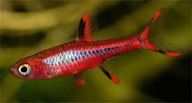 Tudományos név: Boraras brigittae (Vogt; 1978) Szinonímák: Rasbora urophthalma brigittae Magyar név: Zöldsávos törperazbóra Csoport: Pontyfélék Származás: Ázsia; Indonézia, Szumátra Testhossz: 2-2,5 cm Természetes élőhely: Erdei patakokban és tőzegmocsarakban, ahol a rothadó növényi maradványoktól barnás a víz. Viselkedés: Nagyon békés, csapathal, hasonló méretű halakkal társíthatjuk Táplálkozás: Mindenevő, természetes élőhelyén apró rovarokat és kukacokat eszik, de akváriumban megeszi a száraz tápokat is. Szaporítás: Elég nehéz Medence: Minimum 30 literes Halnépesség: 40 literre 6-8 hal Dekoráció: Szereti a sűrűn benövényesített akváriumot, amin a fény csak szűrve jut át. Aljzatnak használjunk homokot, és tehetünk néhány gyökeret vagy ágat az akváriumába. Száraz tölgyleveleket tehetünk az aljzatra, ezzel is utánozhatjuk eredeti élőhelyüket. Hőmérséklet: 25-28 °C pH: 5-7 Keménység: 5-10NK° Várható életkor: 4-8 év Megjegyzés: A hal teste vörösesbarna, melynek testközépvonalán a kopoltyúfedőtől a farokúszó felé kicsit keskenyedő, zöldesfekete, 2 mm szélességű sáv fut végig. Ez a csík a hát felé eső részén vörösen arannyal szegélyezett. A farokúszón világító szemgyűrű (a sáv végén lévő sötét folt) és hátúszójának első sugara is zöldesfekete. A nőstények teltebbek, a hímek kisebbek, több vörös színnel és a farokúszó tövében apró fehér folttal. Tartása és tenyésztése megegyezik a Rasbora maculatáéval. Vízüket szűrjük keresztül tőzegen, amitől az enyhén savanyú lesz. Használjunk nagyon lágy 26-28 °C hőmérsékletű vizet. Elég egy 10-12 literes akvárium is, amit ültessünk be sűrűn pl: Ludwigia, Cryptocorine és hasonló növényekkel. Ha a körülmények megfelelnek a tenyészhalak számára, általában már másnap reggel megkezdik a párzást. Az ikrák száma kb. 50, amit a növények leveleinek a fonákjára ragasztanak. Ikrázás után a szülőket távolítsuk el. Az ikrák 48 óra múlva kelnek ki, a kishalakat etessük nagyon apró poreleséggel. Az adatok a diszhal.info honlapról származnak.