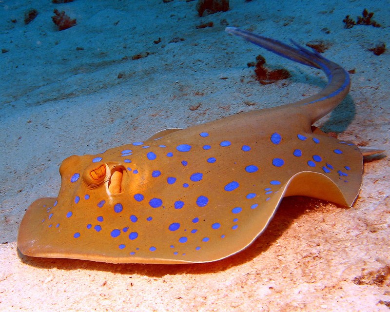 Maximális méret: 30 cm (farok nélkül), Akvárium méret: 500 l. Korallos akváriumba nem való, speciális gondozást igénylő hal. Csak azoknak ajánlható, akik biztosítani tudják a tartásához szükséges körülményeket: egy külön neki berendezett lapos akvárium mindenféle dekoráció nélkül, csak homokkal, és egy nagy barlanggal. Itt érzi igazán jól magát. Etetése problémás, nehezen fogad el élettelen táplálékot. A félhomály, és élő eleség adása segít beindítani a táplálkozási reflexet. Nagy darabos húsos eleséggel etessük. A kisebb halakat, rákokat, csigákat is elkapja, ilyenekkel ne tartsuk együtt. Figyelem! Mérgező tövise van a farka tövén! Ez a tövis a hálókba gyakran belegabalyodik, kifogásakor erre ügyeljünk.