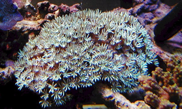 A Clavularia fajokhoz hsonlító polipot visel, de masszív vázat épít magának lapokkal egymáshoz rögzített élénk bordó csövekből. Tartása csak haladó akvaristáknak ajánlott. A begyűjtést, szállítást sokszor nehezen viseli, sok a pusztulás a frissen importált példányok között. A legnagyobb esélye a szemmel láthatóan egyben leválasztott, nem vágott aljú telepeknek van. Ezeket jól rögzítsük oda a kövekhez, mert a könnyű vázat elviszi a víz. Erős fényt és közepes vagy erős, hullámzó jellegű áramlást igényel. A nagyon tisztára szűrt vizet nem szereti.