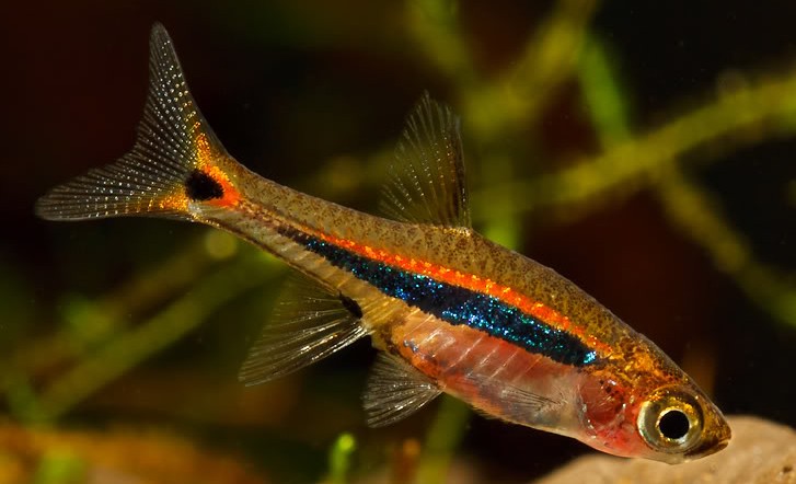 A Boraras urophthalmoides alapszíne barnás-narancssárga, oldalukon egy sötét csíkkal, és a farok alatti úszójuk tövében, valamint a farok tövében egy-egy fekete folttal. E miatt a mintázat miatt sokszor felkiáltójel razbórának is hívják. A sötét oldalvonal felett egy rikító sárga, vagy narancssárga csík található. A Türkizcsíkú törperazbóra színezete a befogási helytől is függ, és e miatt sokszor könnyen összetéveszthető a Boraras brigittae-vel, mert egyes populációjuknak narancssárga, vagy vörös színű csík található a sötét oldalvonaluk felett. Rokonától a kisebb kifejlett testhosszuk, a farok tövén található sötét folt, a viszonylag hosszú oldalvonal, és a kevésbé vöröses színezet alapján lehet megkülönböztetni. A kifejlett nőstények hasasabbak és kissé nagyobbak a sokkal színesebb hímeknél. Mint sok más kistestű pontyféle, a Türkizcsíkú törperazbóra is a növények közé szórja az ikráit, szülői gondoskodást nem mutatnak. Növényekkel sűrűn beültetett akváriumban előfordul, hogy külső beavatkozás nélkül is megjelenik néhány kishal, amelyek sikeresen túlélték a felnőttek falánkságát, de ha több ivadékot szeretnénk, akkor mindenképpen külön akváriumban tenyésszük halainkat. Erre egy kis 12-15 literes, gyengén megvilágított, és Jávai mohával kibélelt akvárium tökéletesen megfelel. A víz legyen nagyon lágy (1-5 NK°), és enyhén savas (5-6,5). Célszerű 2-3, jól táplált párt kihelyezni a medencébe, amelyek általában a következő reggel megkezdik az ívást. Néhány nap után célszerű kivenni a felnőtt halakat, mert az ikrák az ívás utáni második nap környékén kezdenek kikeli, és a felnőttek megehetik a kikelő ivadékokat. A kishalaknak 24 óra múlva már adhatunk mikró eleségeket. Egy hét után általában már elég nagyok, hogy frissen kelt sórákot adjunk nekik. Egy-két hét után már végezhetünk kisebb vízcseréket, amely nem annyira sokkolja a kishalakat.