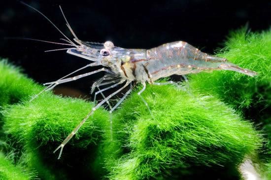 Tudományos név: Macrobrachium lanchesteri -- Macrobrachium lar néven is azonosítják Egyéb nevek: Üveggarnéla -- Glass Shrimp -- Glasgarnele -- Ghost Shrimp Eredet: Délkelet-Ázsia , Thaiföld Méret: hím: 10 cm nőstény: 5-8 cm Ideális tartási hőmérséklet: 22°C-28°C Etetés: alga, növényi alapú eleségek, egyéb haleledelek (lemezes, granulált stb.) Szaporodás: A nőstény lárvákat enged el. A lárvák több fejlődési stádumon mennek keresztül, fejlődésükhöz sós vizet nem igényelnek. Hazánkban (kivételesen) nagyon gyakori, sok kereskedésben kapható faj, az oldalon szereplő algaevő garnéláktól könnyen megkülönböztethető hosszúra nyúlt ollós pár lábáról. Könnyen tartható, de az apróbb garnélákat (főleg legyengült, beteg példányokat) megeheti! Találó nevét teljesen átlátszó testéről kapta, angolszász nyelvterületeken Szellem garnélának (Ghost Shrimp) is hívják - csakúgy, mint a nagyon hasonló, de kisebb testű Palaemonetes paludosus-t. Enyhén lúgos, közepesen kemény vízben érzi jól magát, tehát itthon a csapvíz megfelelő neki. A hímek erőteljesebb alkatúak, hosszabbak az ollóik. Ragadozó természetűek, de társíthatók halakkal, akár kisebbekkel is, csak a legyengült példányokat vadásszák le. Könnyen tarthatóak, bármit megesznek (száraz vagy fagyasztott tápok, tubifex stb.), 2-3 évig élnek. Az adatok a diszhal.info honlapról származnak.