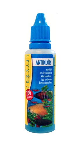 Neptun antiklór akváriumi vízkezelő. A csapvíz klórtartalmát megköti, így az újonnan feltöltött akváriumba hamarabb telepíthetőek a díszhalak, és a vízcserét is biztonságosabbá teszi. Megköti továbbá a mérgező nehézfémeket, polimer hatóanyaga pedig védőréteget képez a halak bőrén, ezzel stresszoldó és fertőzésgátló hatást biztosítva számukra.