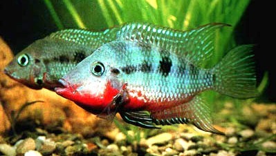 * Tudományos név : Thorichthys meeki * Szinonímák: Cichlasoma meeki * Magyar név: Vöröstorkú sügér * Csoport: Sügérek * Származás: Guatemala * Testhossz: 12-15 cm * Természetes élőhely: Tavak sekély részei, patakok, elárasztott területek. * Viselkedés: Relatív békés, tartható társas akváriumban, de területvédő. * Táplálkozás: Mindenevő. * Szaporítás: Könnyű * Medence: Minimum 150 literes. * Halnépesség: 150 literre 1 pár * Dekoráció: Az aljzat legyen apró kavics, dekorációnak kövek gyökerek. A növényeket jól rögzítsük, mert a halak szeretnek "ásni". * Hőmérséklet: 20-27°C * pH: 6,5-8,5 * Keménység: 4-20 NK° Megjegyzés: Alapszíne palaszürke, de úszói, pikkelyei különösen a kifejlett hímeken, vörössel szegettek. Kopoltyúfedője és mellrésze ívás idején vérvörös. Testén sötétebb keresztcsíkok, a kopoltyúfedőn, a testközepe táján fekete folt, mely az egészen kis ivadékon is megtalálható, a hímeken általában a faroktőnél is fekete folt van, amely íváskor halványul. Ha kiskorban kerül társas akváriumba, úgy nem bántja annak lakóit, de a nagy, magukban tartott egyedek bizony kárt tehetnek. Akváriumának talaját ne tiszta homokkal, hanem apró kavicsokkal terítsük. Minden gondos előkészítés ellenére sem fog tetszeni nekik, és ha a víz hőmérséklete 24-26 °C, hamar átrendezik az íváshoz. Több hal közül rendszerint könnyen kiválik az egymásra talált pár, és ezek különvonulva a kiszemelt helyen, mint kis kotrógépek hordják el a talajt, hogy megfelelő helyet készítsenek az ikrarakáshoz. Egy fejlett tenyészpár könnyen 500-600 ikrát is rak, messze elűzve onnan minden más halat. A népes család három nap múlva kel ki, és a szülők szájukban átköltöztetik őket előre elkészített gödrökbe. A hatodik nap úszik el a népes család. Fölnevelésük apró eleséggel igen könnyű. Az adatok a diszhal.info honlapról származnak.